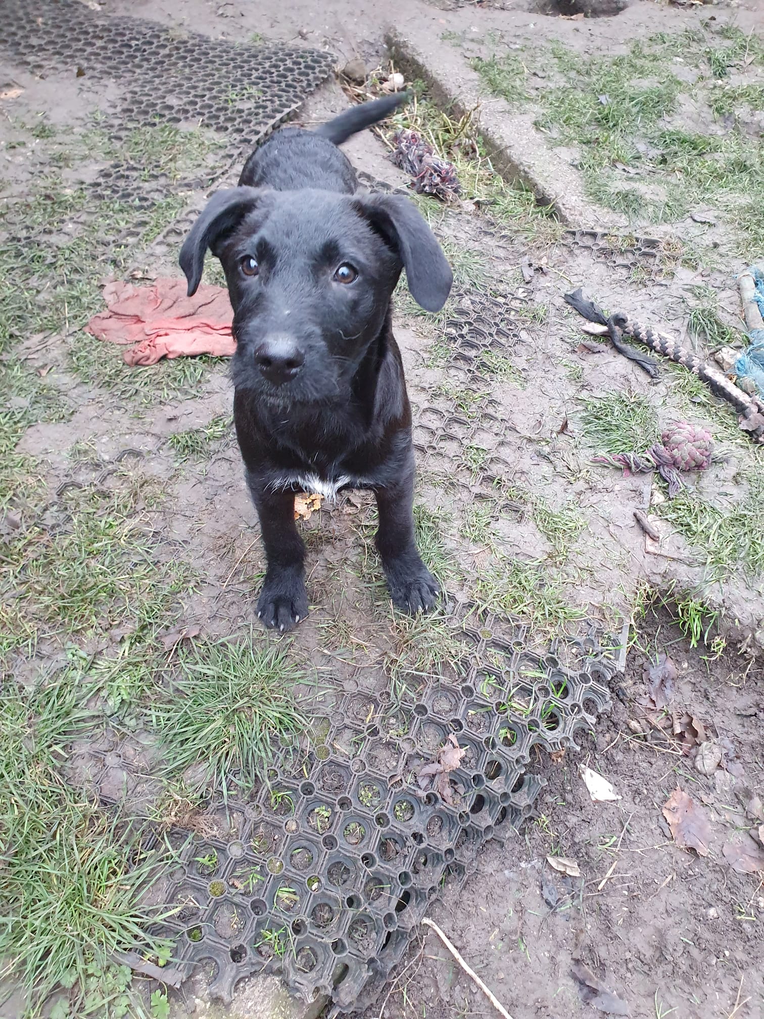 Welpentypisch verspielt, sehr offen für neue Situationen, nicht scheu