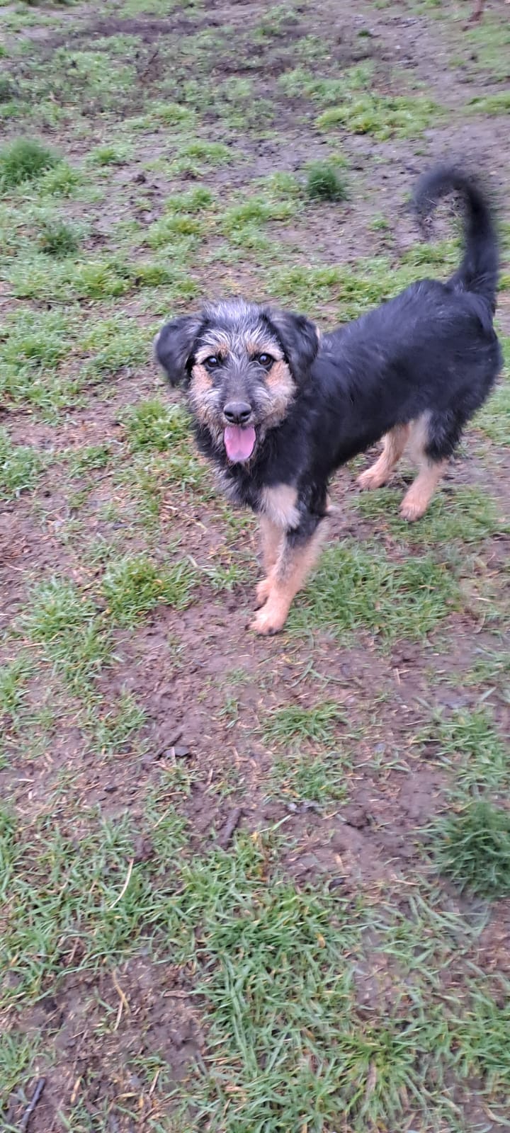 Welpentypisch verspielt, sehr offen für neue Situationen, nicht scheu