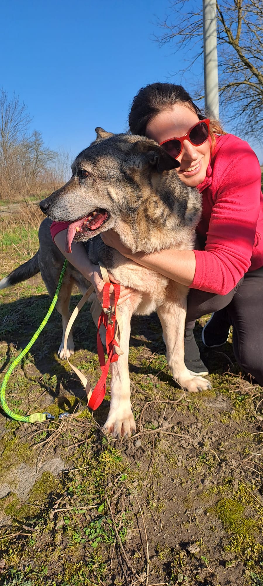 DER HUNDE IST SEHR FREUNDLICH ZU MENSCHEN UND HUNDEN ; GEHT GUT AN DER LEINE