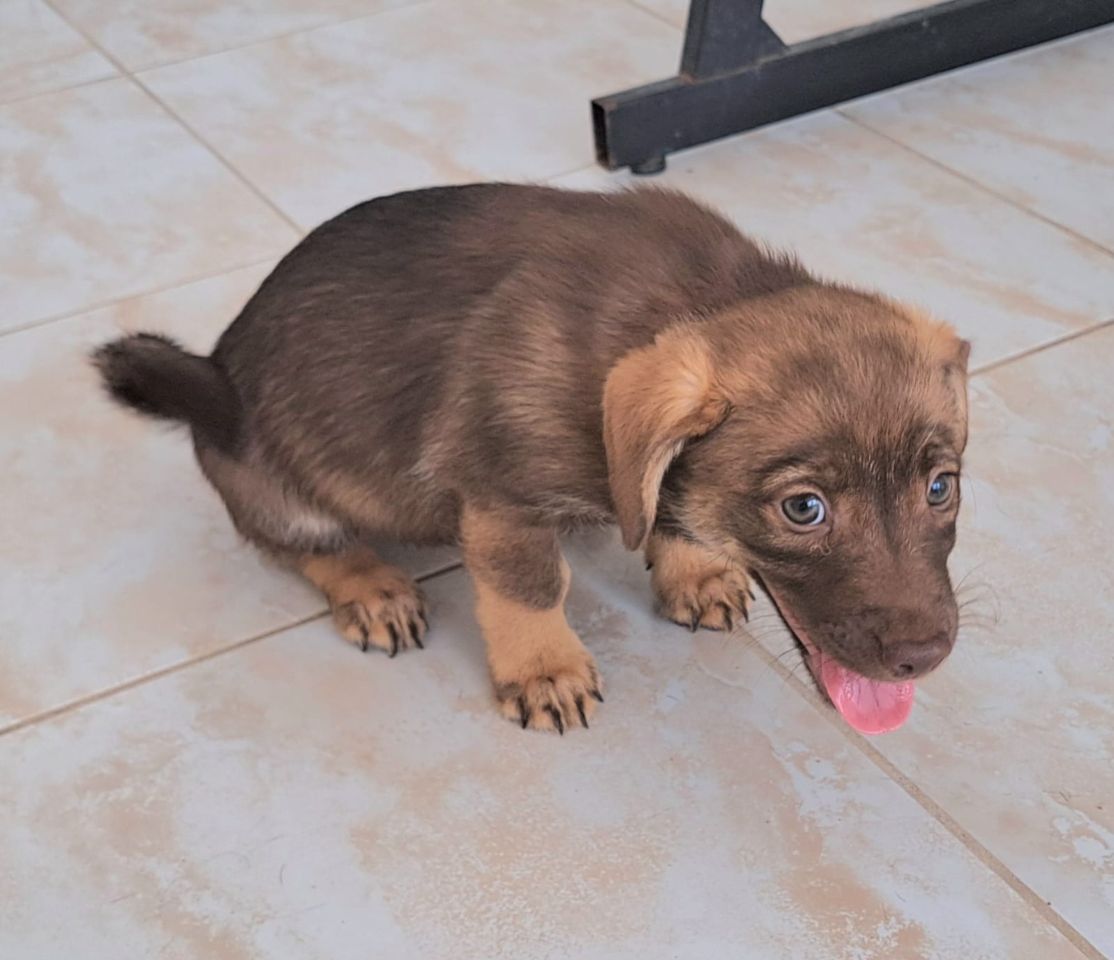 Welpentypisch verspielt, sehr offen für neue Situationen, nicht scheu