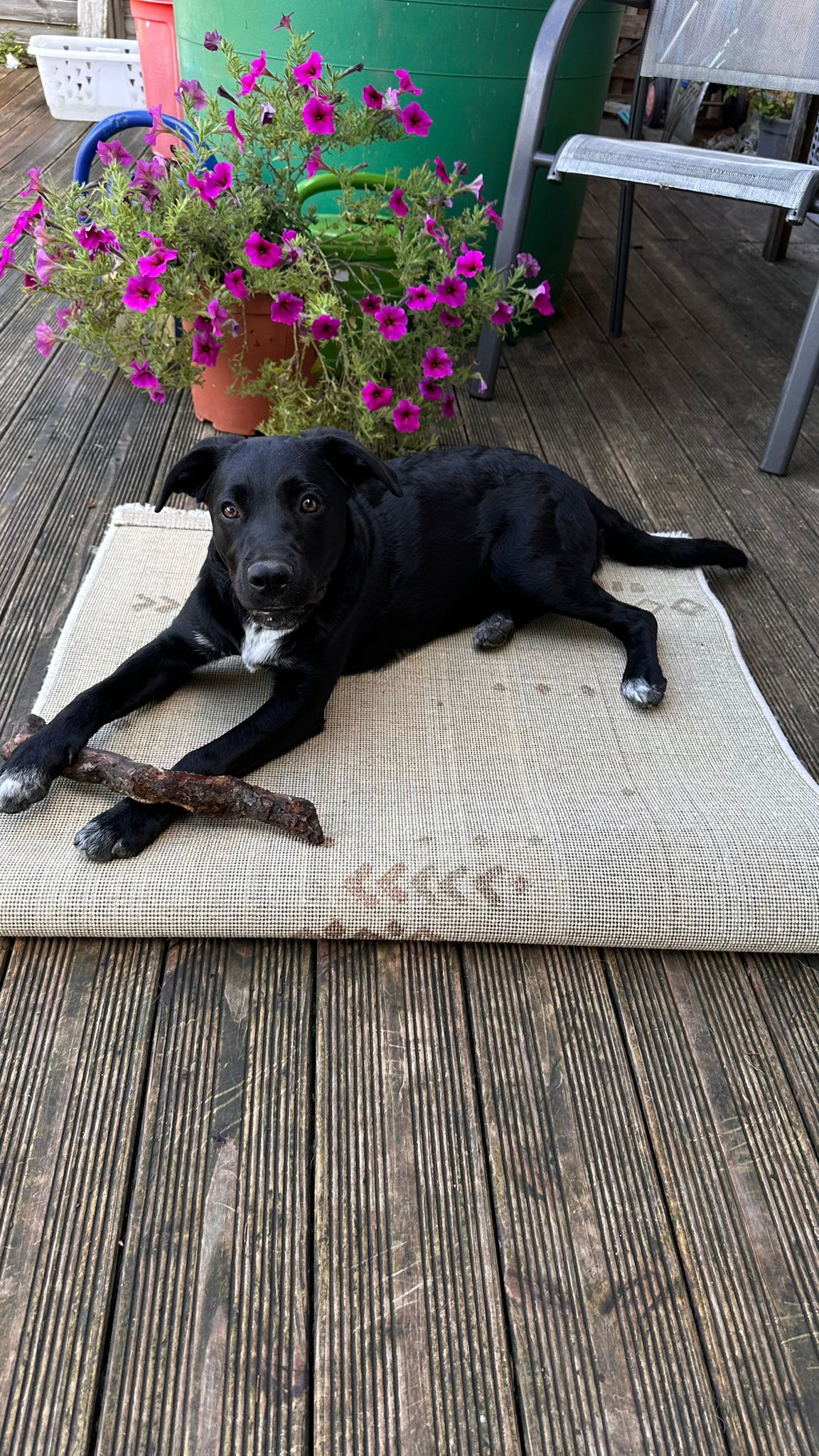 Welpentypisch verspielt, sehr offen für neue Situationen, nicht scheu