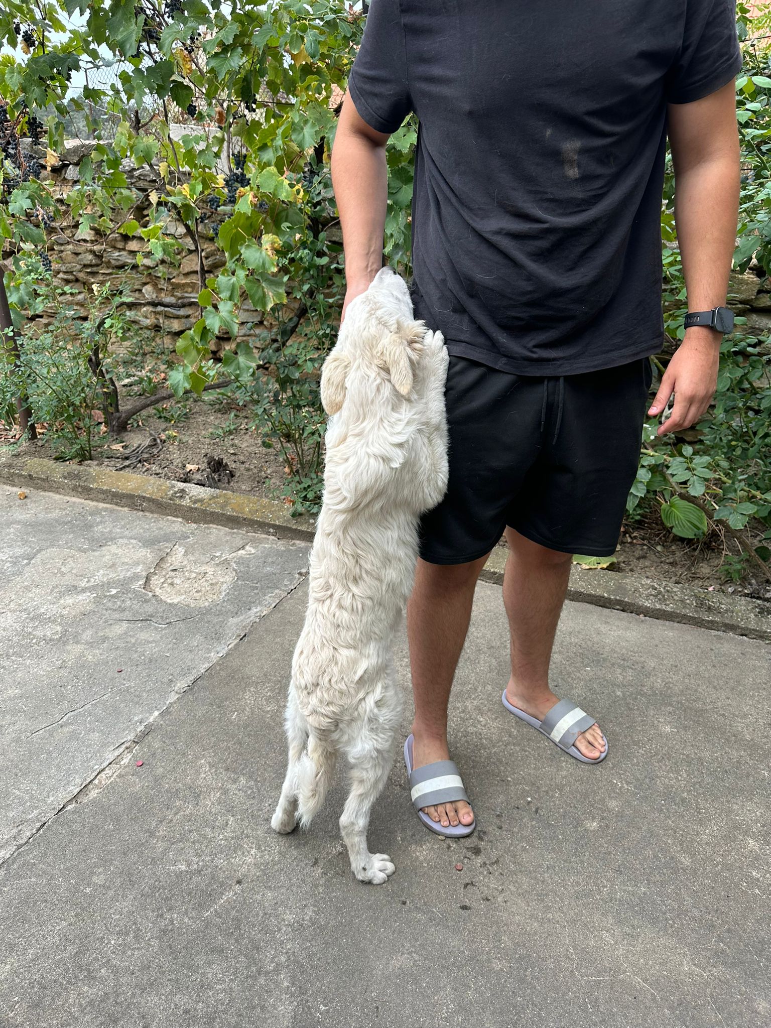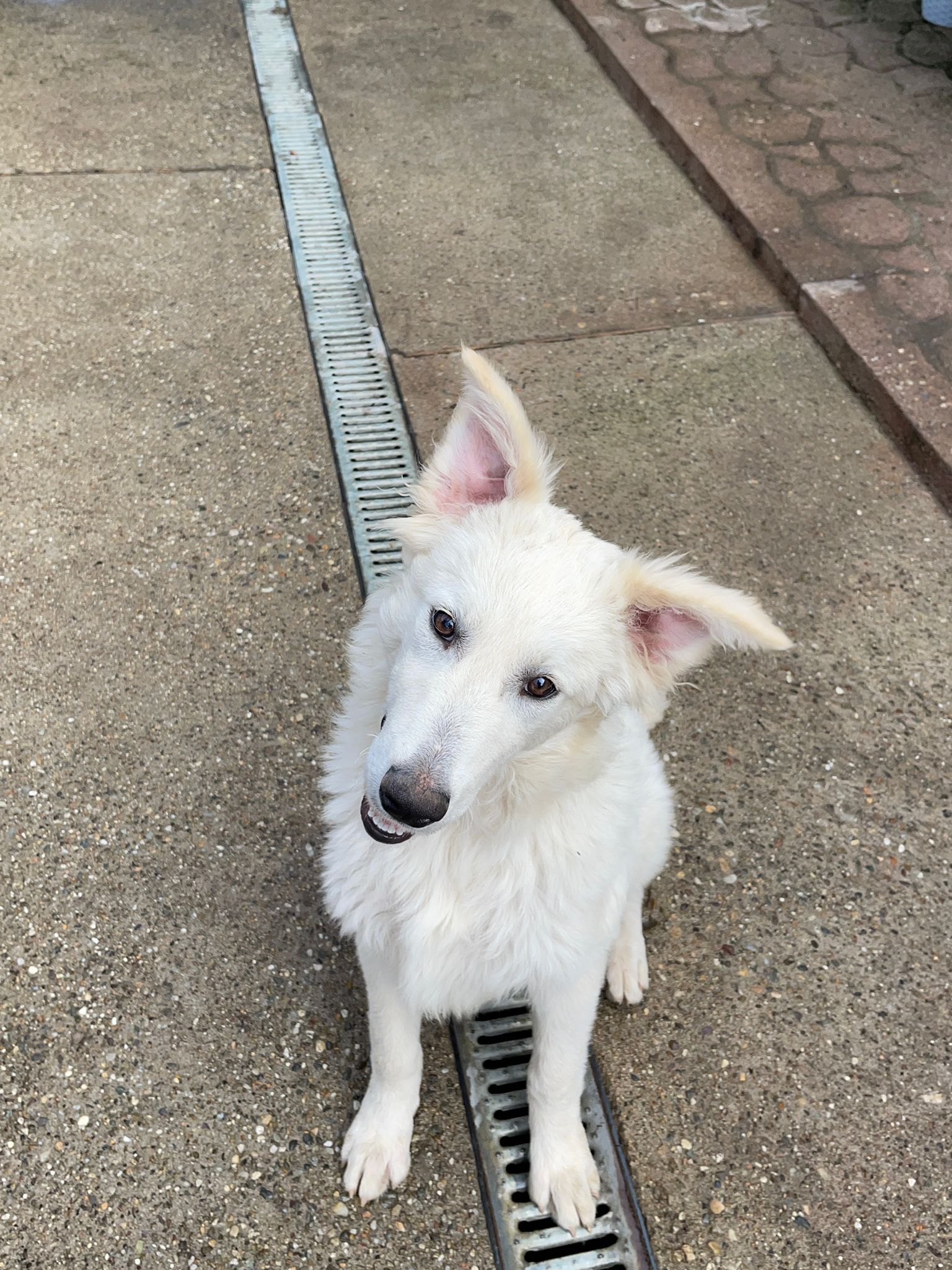 Welpentypisch verspielt, sehr offen für neue Situationen, nicht scheu