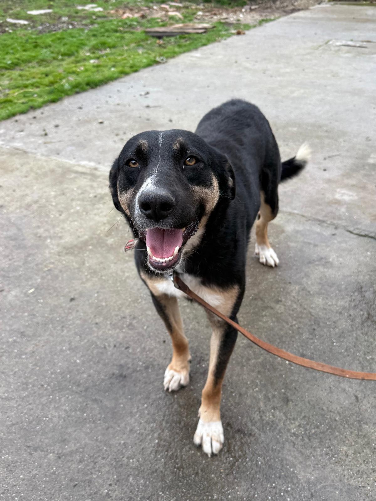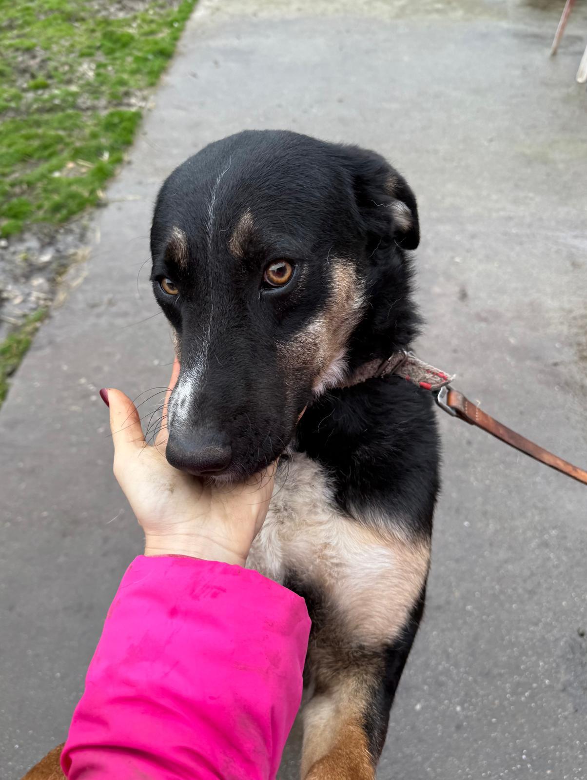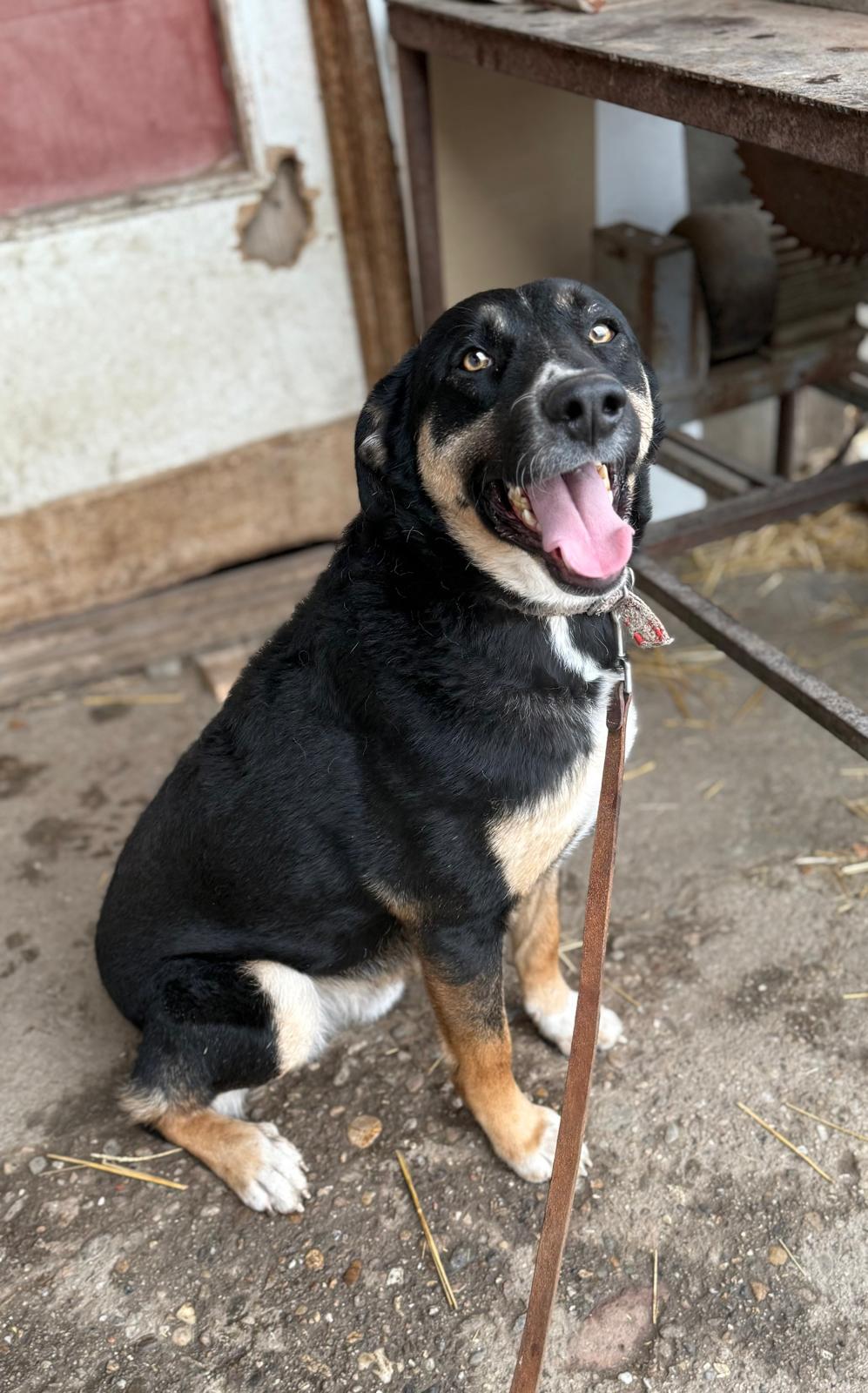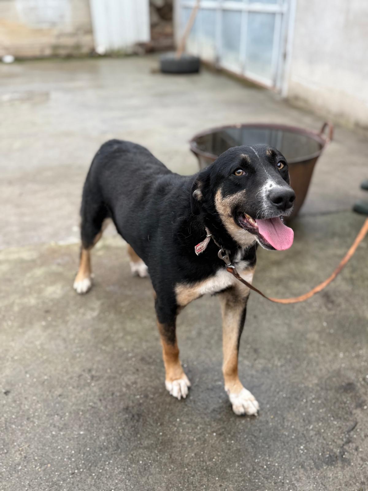 DER HUNDE IST SEHR FREUNDLICH ZU MENSCHEN UND KATZEN, HUNDEN ; GEHT GUT AN DER LEINE
