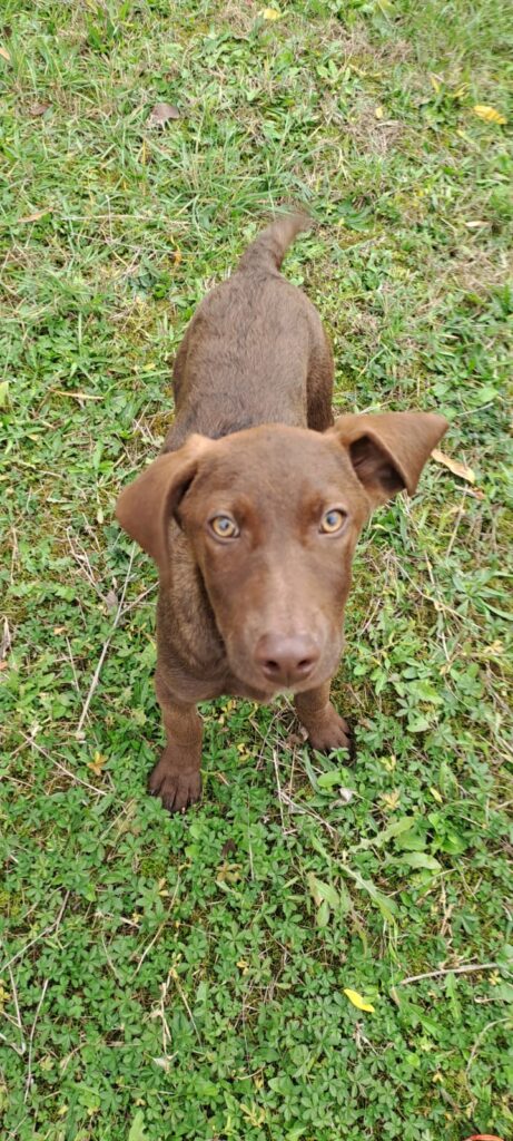 Welpentypisch verspielt, sehr offen für neue Situationen, nicht scheu