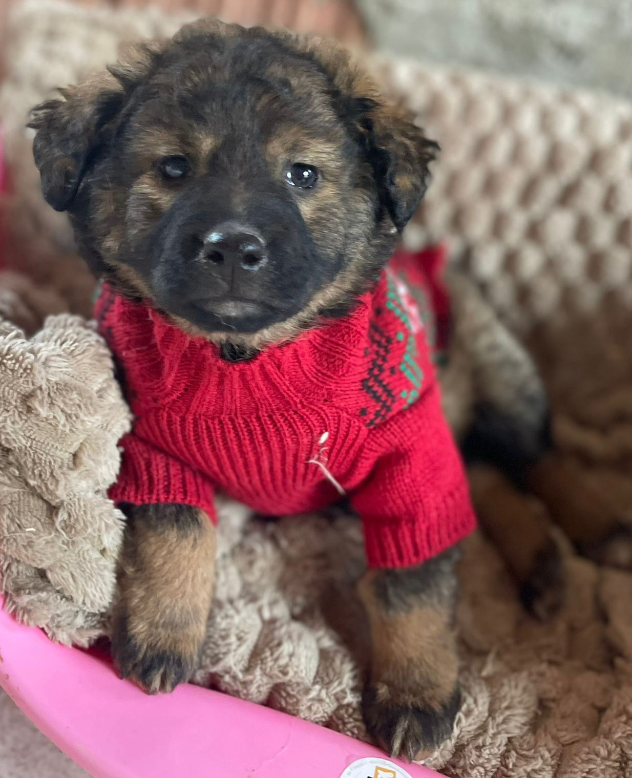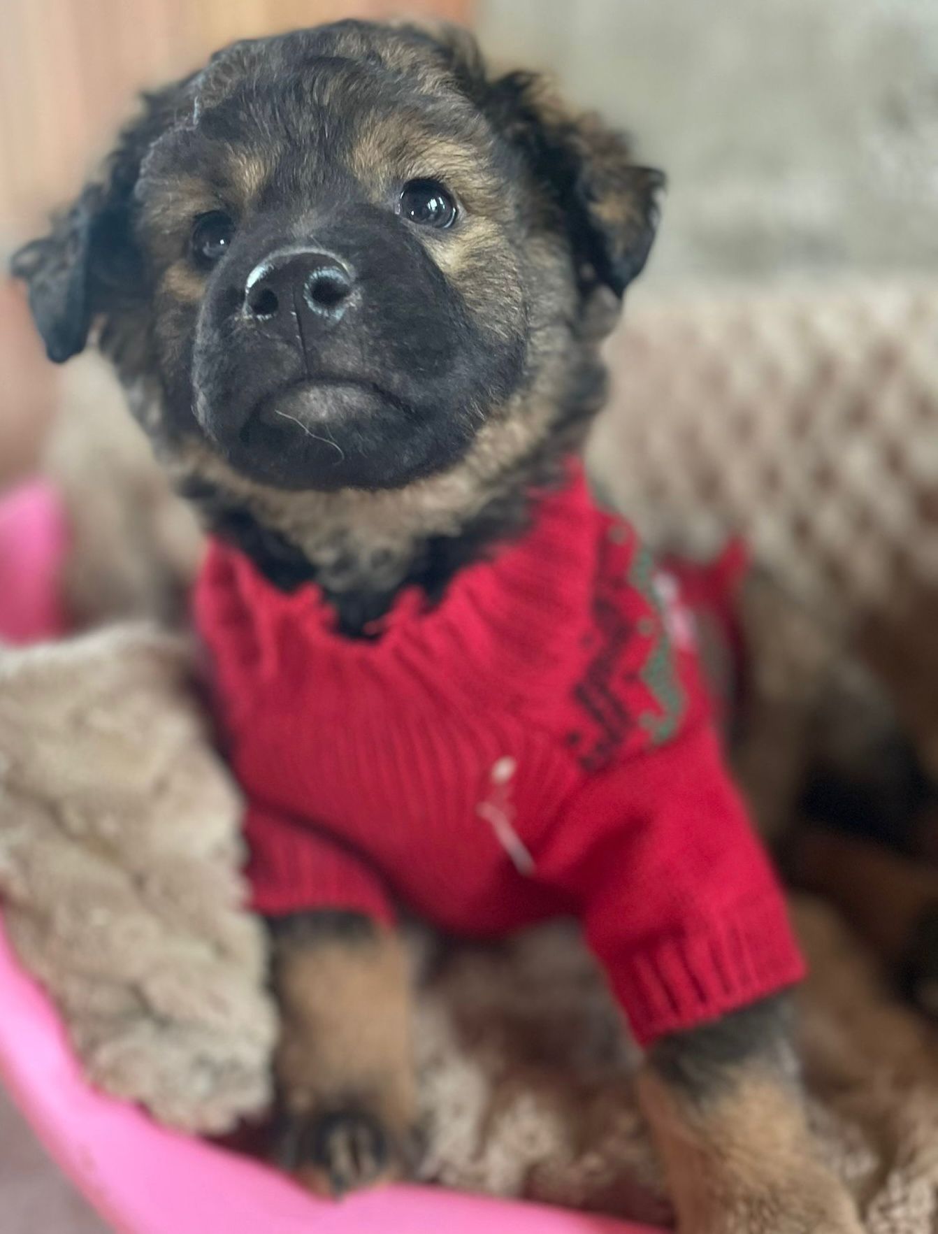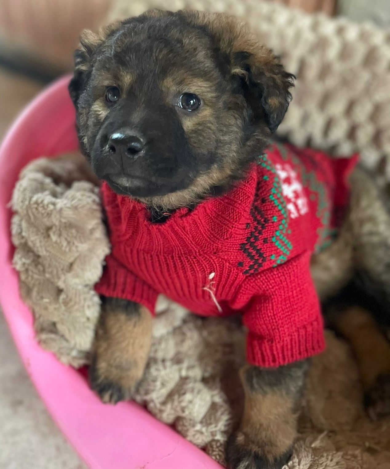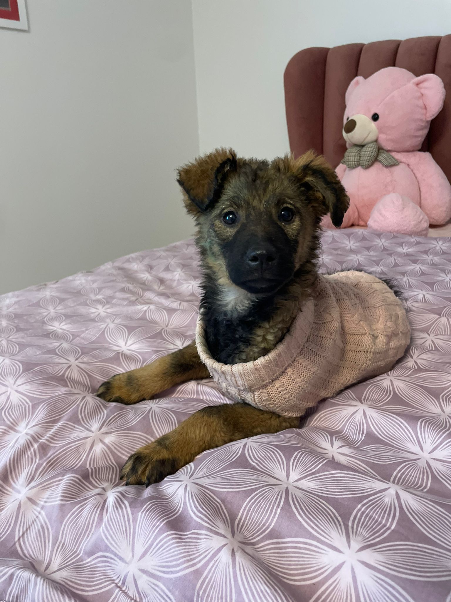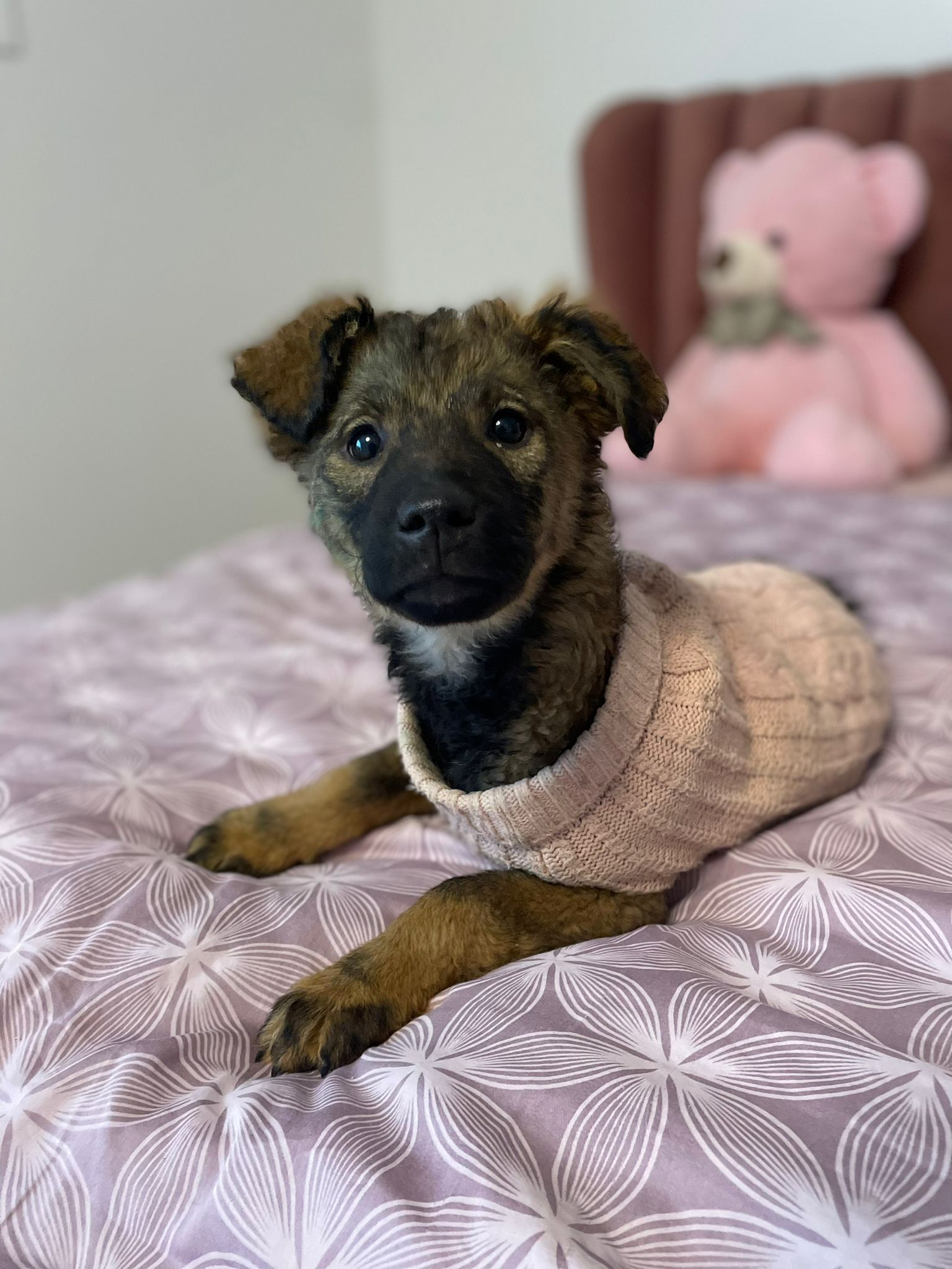 Dieses Welpenmädchen zeigt sich aktiv, freundlich und fühlt sich in Gesellschaft anderer junger Hunde wohl. Sie sucht Nähe zu Menschen und nimmt Kontakt ohne Schwierigkeiten auf.